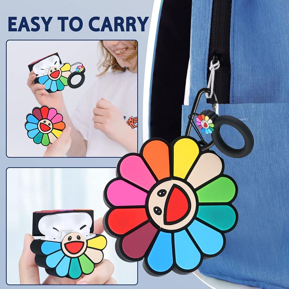 Besoar لـ AirPods Pro 2019/Pro 2 Gen 2022 حافظة كارتونية لطيفة من السيليكون Kawaii لأجهزة Apple AirPod Air Pods Pro تصميم غطاء رائع فريد من نوعه وممتع ومضحك وناعم للفتيات والأولاد (زهور لونية)