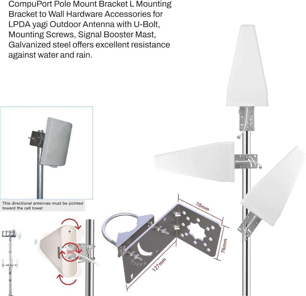 حامل هوائي CompuPort Universal YAGI مع 2 مسامير U قابلة للتعديل للعلية/الخارج، تركيب محطة الطقس للمباني - فولاذ مجلفن IP66
