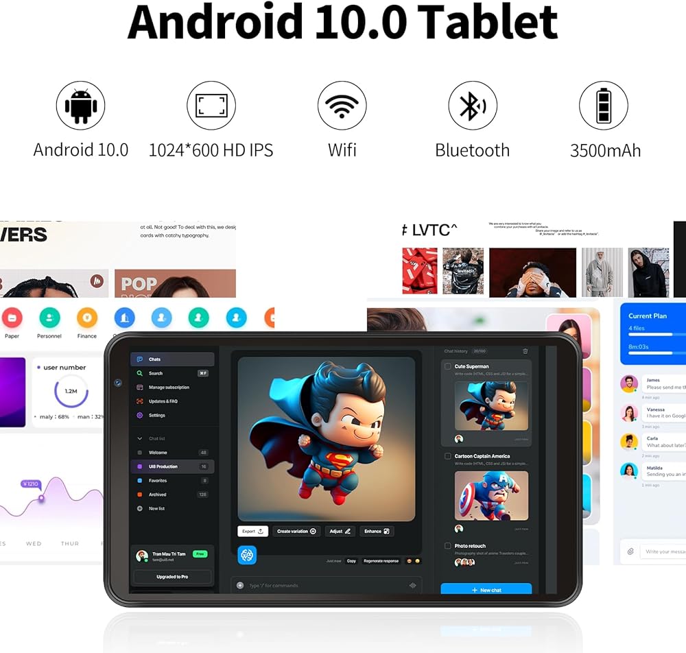 This tablet not only has a gorgeous 1024x600 HD IPS screen, but also has a low power Quad-core processor that runs fast and smoothly, giving a great experience, and this tablet is certified and can download a large number of free applications. For example, Facebook, YouTube, etc.