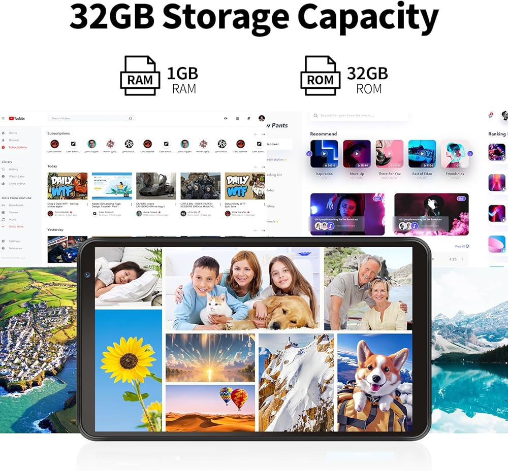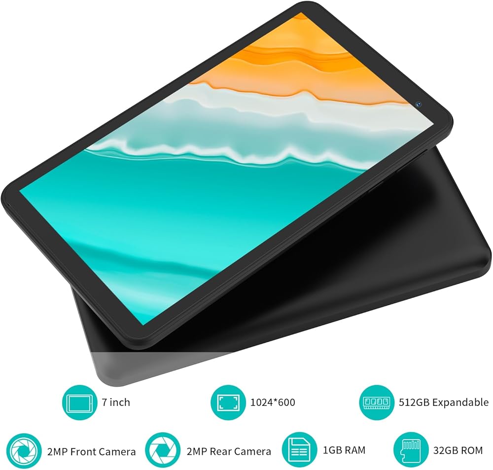 7-inch IPS HD Display--The Android 7-inch tablet comes with a high resolution 1024x600 IPS HD screen that will bring you more realistic colours.