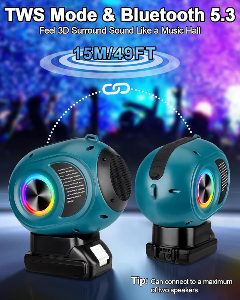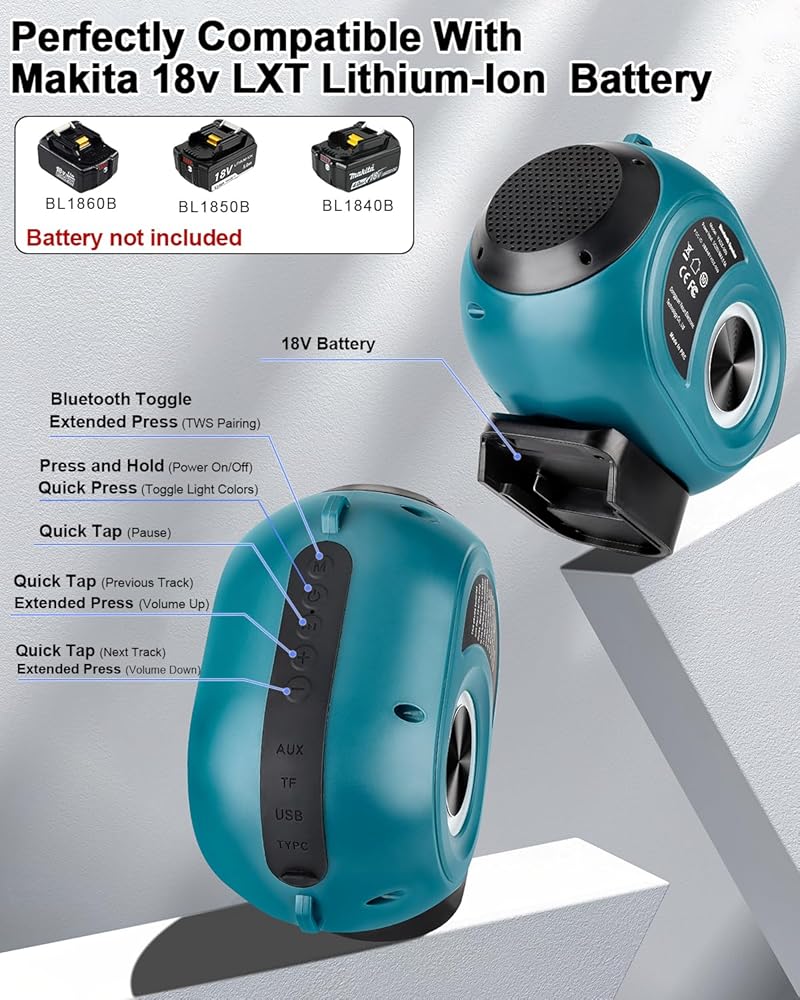 مكبر صوت بلوتوث لبطارية ماكيتا 18 فولت LXT، مكبر صوت لاسلكي مع صوت عالي الدقة، اقتران TWS، بلوتوث 5.3، لمواقع العمل/المنزل/الحفلة/الخارج/الشاطئ/هدية (البطارية غير متضمنة)