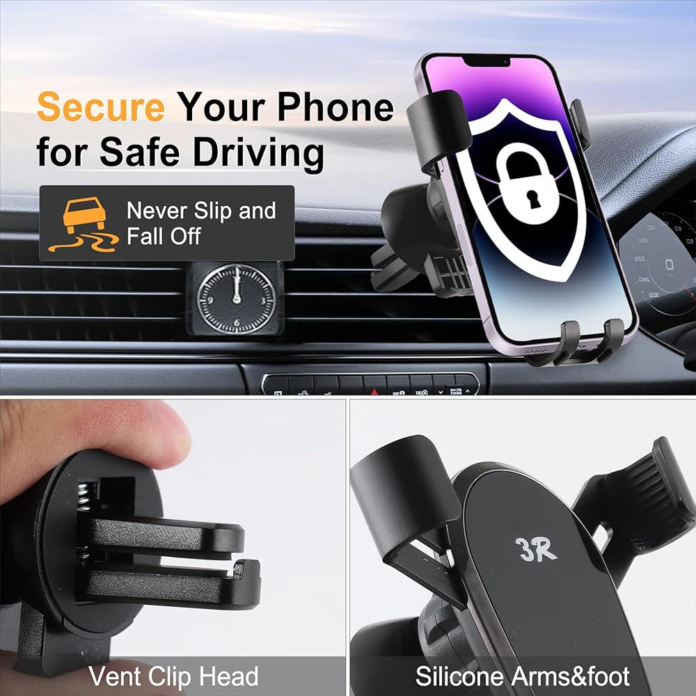 【Upgraded Vent Clip Head】The Car phone mount features a stronger, thinner vent clip and an innovative support ring for extra support, which could hold your phone securely on an air vent in your car.