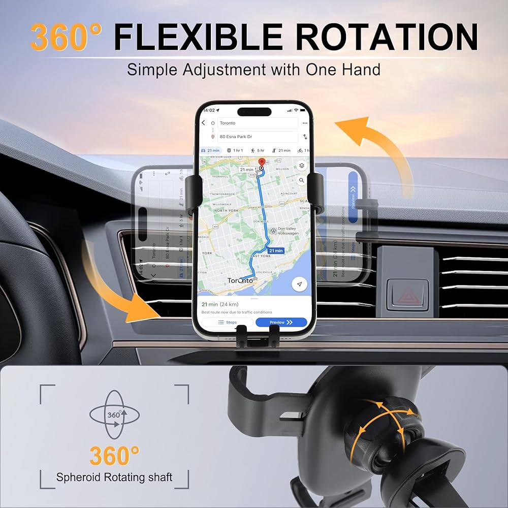 【360° Flexible Rotation】The 360-degree rotatable design allows you to place your phone in any orientation (landscape, portrait, etc.) to ensure that you have the best viewing angle while still enjoying the best driving experience.