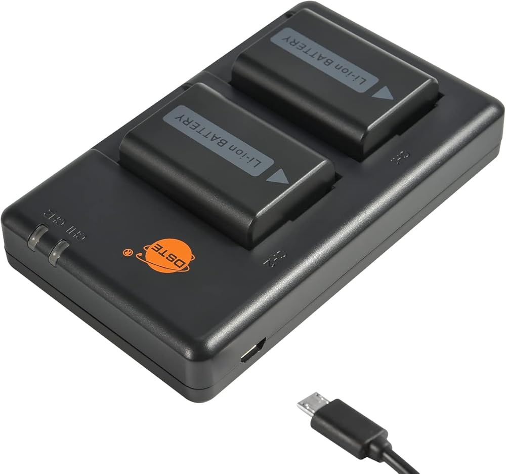 حزمة بطارية ليثيوم DSTE NP-FW50 (عبوتين) وشاحن مزدوج متوافق مع كاميرا Alpha 7 وa7 وAlpha 7R وa7R وAlpha 7R II وAlpha a3000 وa6000 وNEX-7 وSLT-A55V وDSC-RX10
