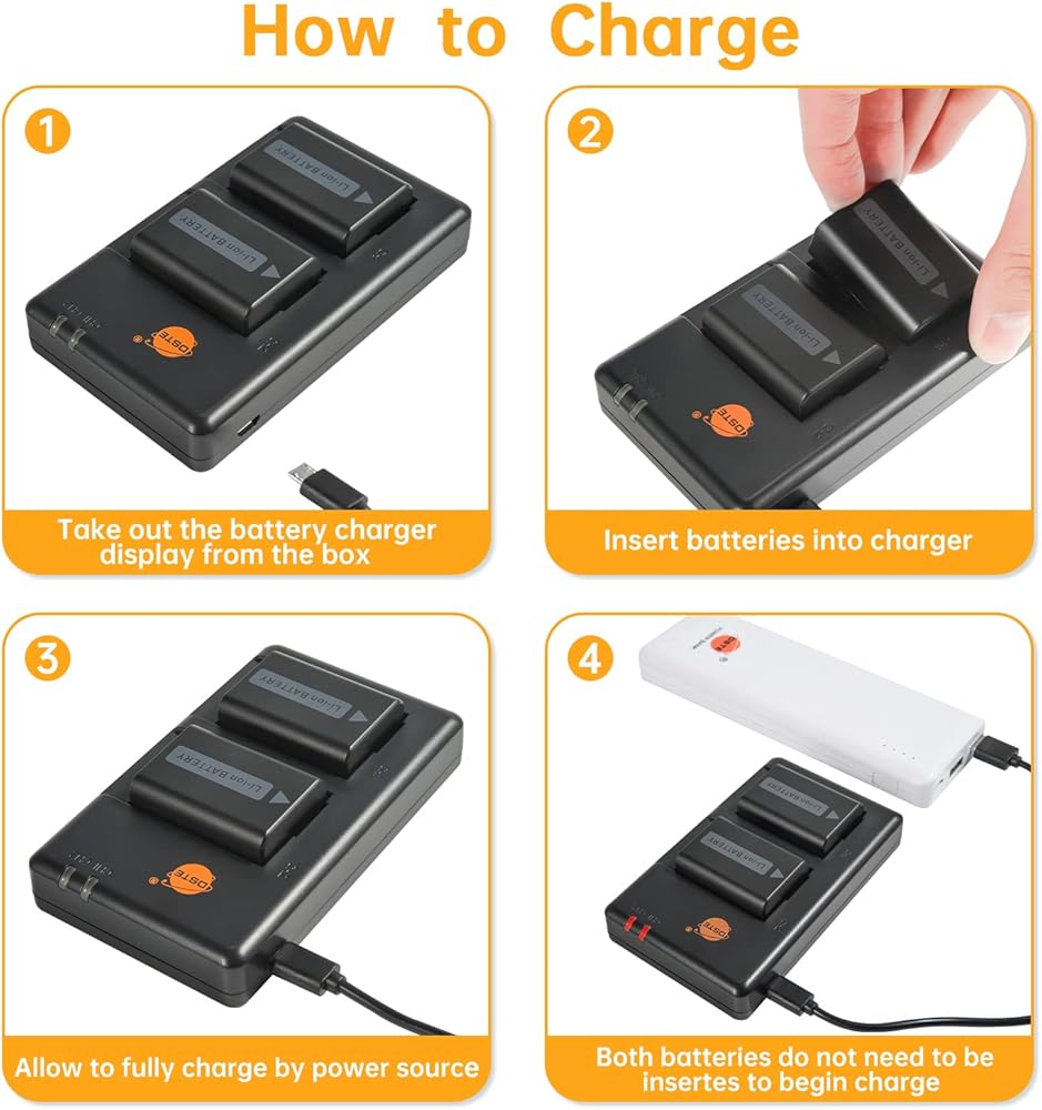 • 【MULTIPLE CHARGING OPTIONS】 The NP-FW50 usb charger can be connected with any cable with 5V USB source like PC, car charger or power bank etc for added charging option. With common micro USB cable, you can charge your batteries everywhere and never worried about out of juice.