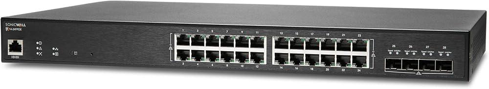 The SWS14-24FPOE SonicWall switch delivers highspeed network switching while providing unparalleled performance and manageability. It prioritizes certain traffic on the network such as VOIP for video conferences while working from home, with features such as QoS. This switch is ideal for small and medium-sized business (SMB), and Software-Defined Branch (SD-Branch) deployments.