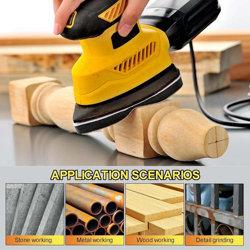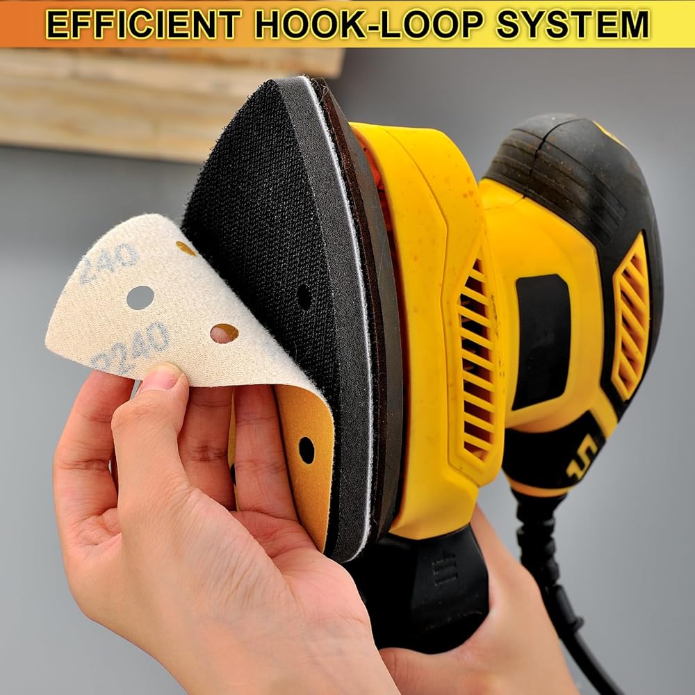 【Efficient Hook-Loop System】-The reliable hook-loop system ensures quick and secure attachment of sanding pads, allowing for faster and more efficient sandpaper changes. This feature improves workflow and makes detail work more manageable.