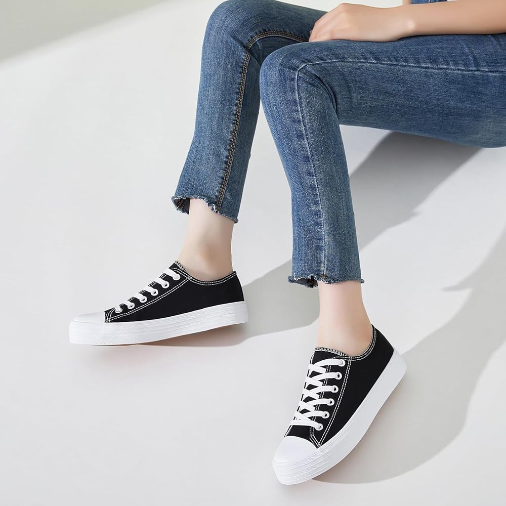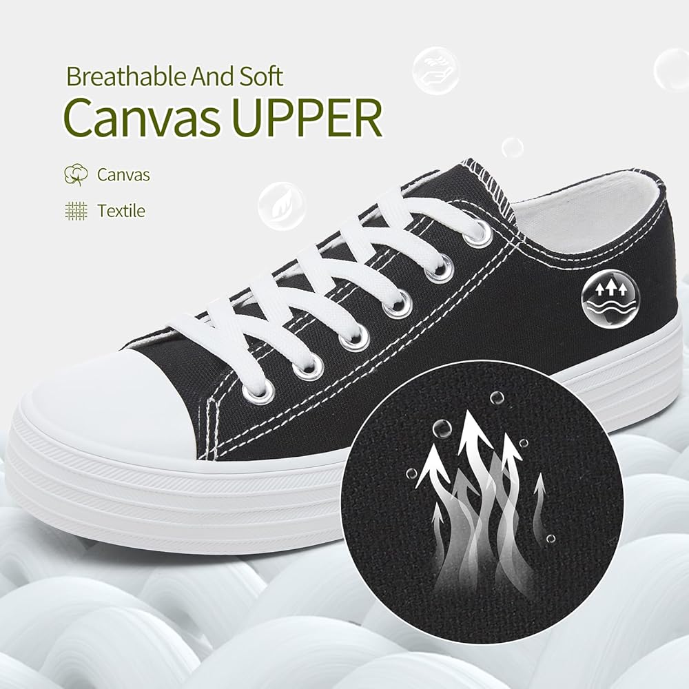 【خفيفة الوزن ومسامية】يمكن للنعل الداخلي المبطن الناعم لأحذية المشي المنخفضة أن يزيد من راحتك أثناء ممارسة التمارين والمشي. يمكن للأحذية الرياضية القماشية البيضاء للنساء أن تبقي قدميك تتنفسان حتى في فصل الصيف الحار.