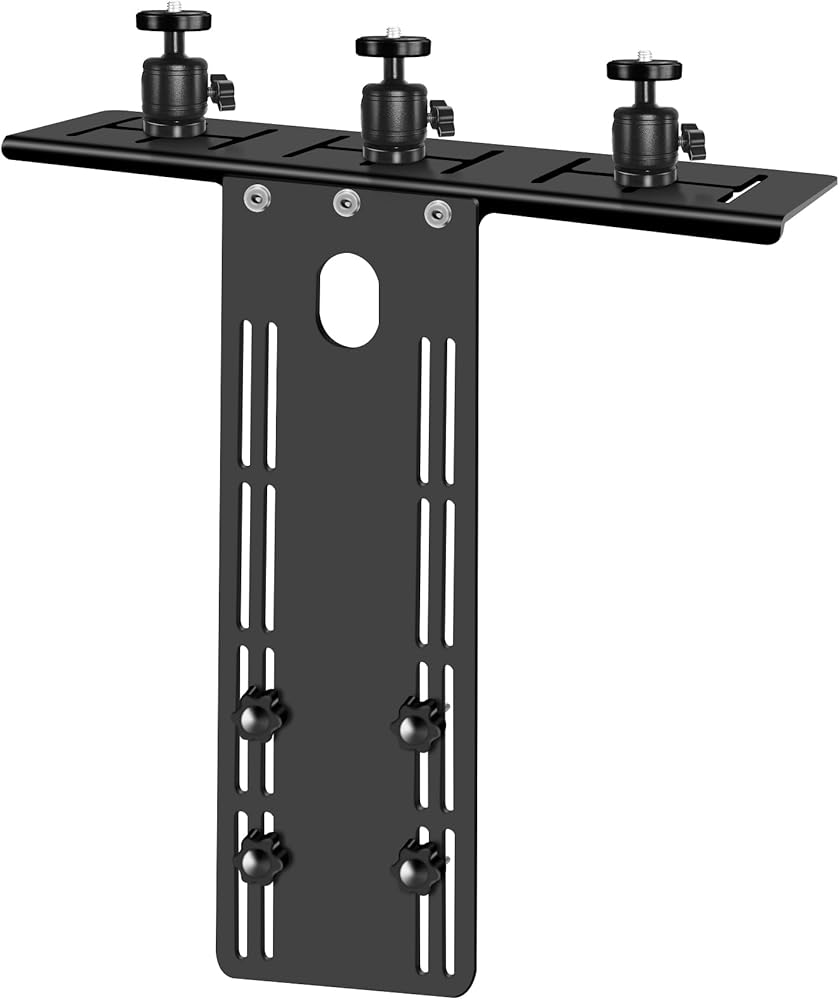 【دعم قوي ومستقر】حامل الكاميرا الخاص بنا مصنوع من مادة لوحة الألومنيوم المختومة مع معالجة مضادة للصدأ، وتصميم الهيكل على شكل حرف T قوي ومتين. تركيب بسيط ومرن مع خيارات التركيب الأمامية والخلفية. قم بالتركيب باستخدام ذراع VESA أو بدونه وفقًا لتصميم شاشة الكمبيوتر لديك.