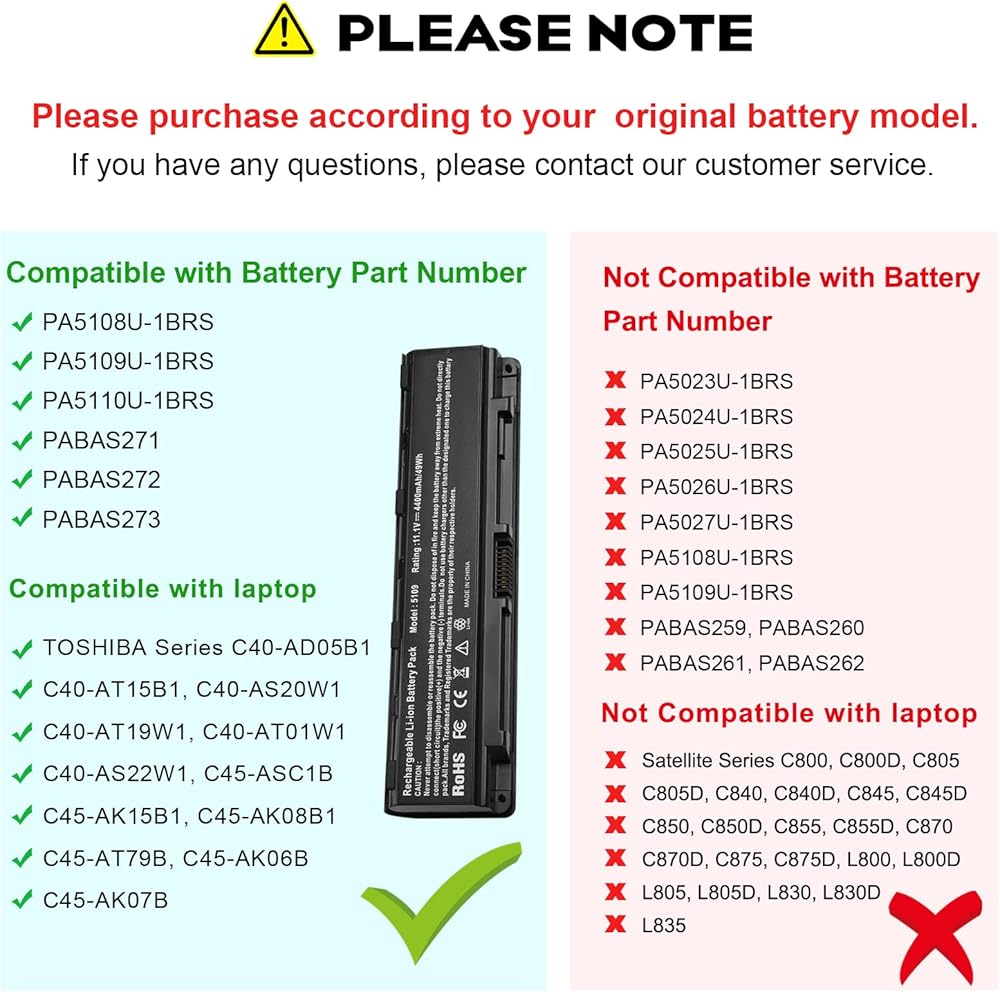 - بطارية بديلة متوافقة مع توشيبا ستالايت C55-A C55Dt C55-A5300 C55Dt-A5241 C55t-A5222 C55-A5245 C55-A5282 C55-A5285 C55-A5286 C55-A5298 C55-A5300 C55-A5302 C55-A5308 C55 -A5309 C55-A5311 C55 -A5330 C55-A5332؛ بطارية للقمر الصناعي C55-A، C875، C855، L75، L855، L875، M840، P845، P855، P875، S855، S875؛ متوافقة مع Toshiba Satellite S70DT C55D-A5150 C55T-A5314؛