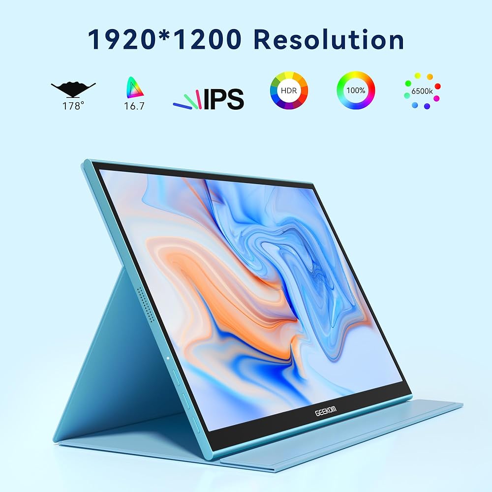 • [شاشة Full HD 1200P IPS] شاشة محمولة GEEEKOM PM16 مقاس 16 بوصة مصممة بشاشة IPS بدقة 1920*1200، تدعم زاوية عرض واسعة 178 درجة وألوان عرض 16.7 مليون، واستعادة صور أكثر وضوحًا وحيوية لتجربة بصرية أكثر سلاسة وغامرة. يقلل بشكل فعال من أضرار إشعاع الضوء الأزرق، بدون وميض أو العناية بالعين، ويجعل من السهل مشاهدتها لفترة طويلة.