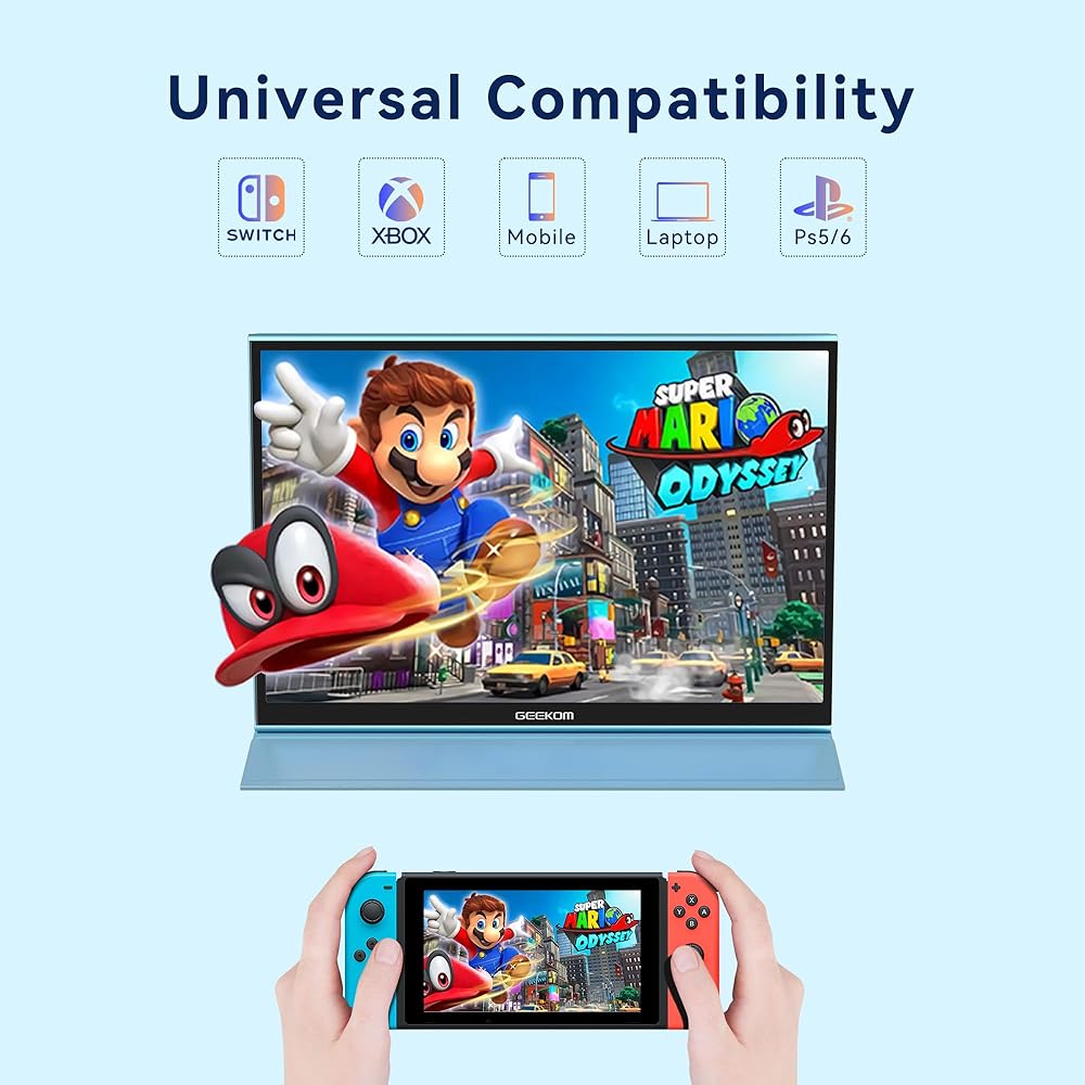 • [وضع عرض متعدد] تتميز شاشة GEEKOM PM16 المحمولة بوضع أفقي وصورة يمكن استخدامها كشاشة رئيسية بمفردها للأجهزة الأخرى مثل سطح المكتب، والكمبيوتر الصغير، وPS5، وxbox وما إلى ذلك، كما تستخدم الوضع المكرر، ووضع التمديد كشاشة ثانية للكمبيوتر المحمول، هاتف ذكي.