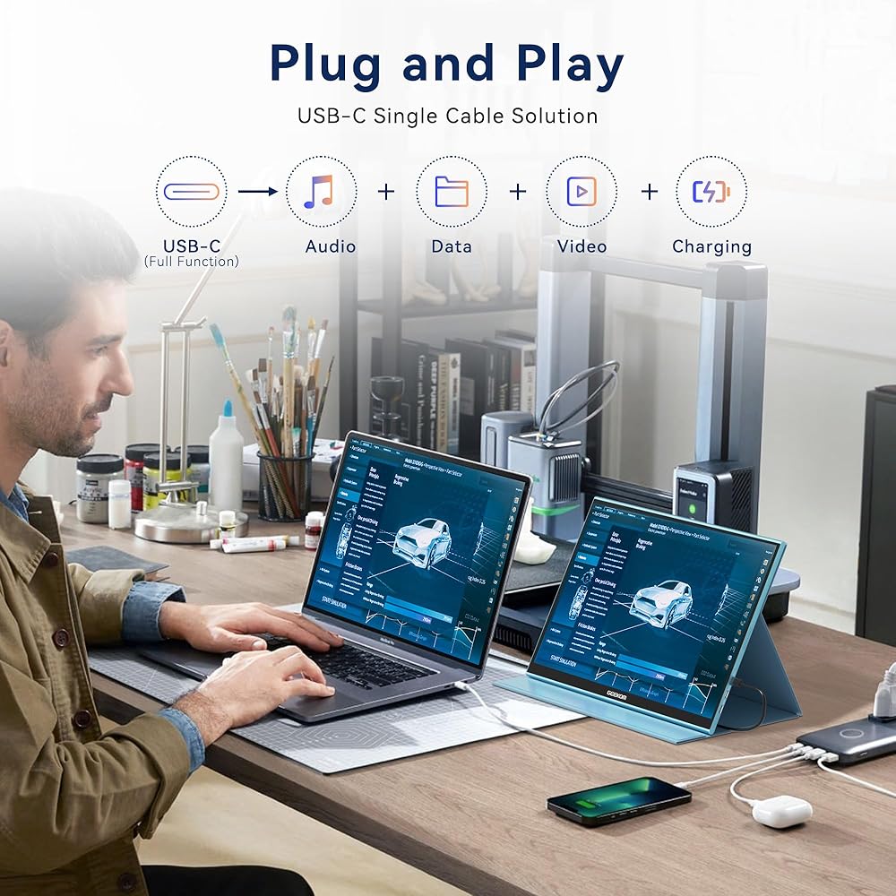 • [شاشة توصيل وتشغيل USB-C] كجهاز توصيل وتشغيل مريح، تتميز شاشة GEEKOM PM16 المحمولة بمنفذين USB-C كاملي المزايا ومنفذ HDMI صغير، مما يوفر جميع التوصيلات اللازمة للألعاب والعمل، و مما يسمح بنقل عالي الوضوح لإشارات الصوت والفيديو. إنه يعمل بسلاسة مع معظم الأجهزة اللوحية وأجهزة الكمبيوتر المحمولة وأجهزة الكمبيوتر الشخصية وأجهزة الكمبيوتر الصغيرة والهواتف الذكية وأجهزة PS4 وXBOX وNintendo Switch والمزيد.