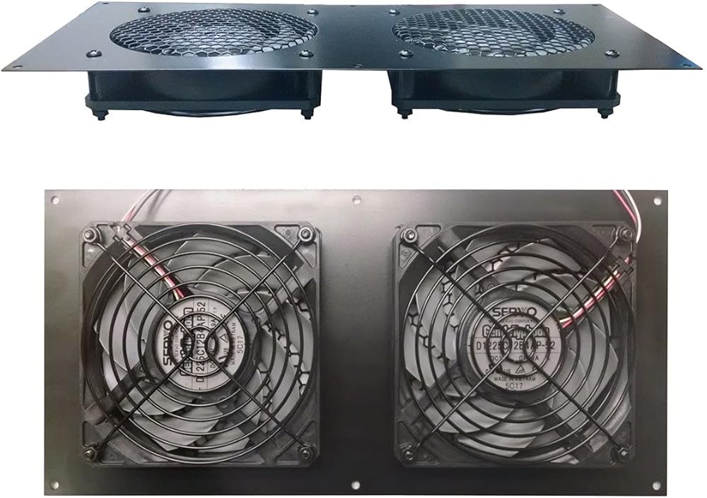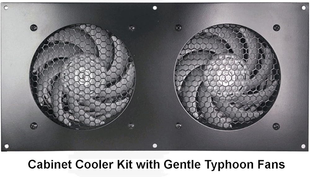 Dual 120mm (6.25" x 13.0") fan kit for cooling your cabinet or multimedia center. This AV cabinet cooling kit utilizes two 1450 rpm Gentle Typhoon fan made by Nidec. These are arguably the best 120mm fans on the market