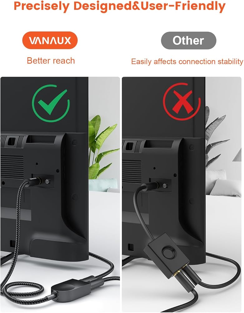 【متانة مذهلة】مقسم الصوت البصري VANAUX 1 في 2 مصنوع من طبقة متينة من السترة المضفرة، والتي يمكن أن تحمي الكابل من مكامن الخلل والشقوق، وتزيد من المرونة. موصلات مطلية بالذهب عيار 24 قيراط، تقاوم التآكل، وتقلل من فقدان البريق، مما يضمن اتصالًا محكمًا بالإضافة إلى توفير نقل إشارة واضح وسلس وموثوق.