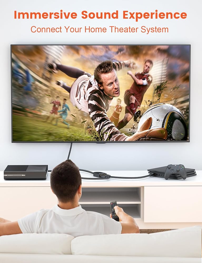 التوافق على نطاق واسع: يقوم مقسم بصري من 1 إلى 2 بتوصيل أي مكون صوتي مثل وحدة التحكم في الألعاب أو مشغل DVD أو أي مصدر صوت رقمي آخر لكل من نظام المسرح المنزلي لجهاز الاستقبال والمسجل الخاص بك. مثالية لصوت PCM غير المضغوط، وأنظمة الصوت المحيطي المضغوطة 5.1 إلى 7.1 بما في ذلك Dolby Digital Plus، وDTS-HD عالي الدقة، وADAT's وLPCM.