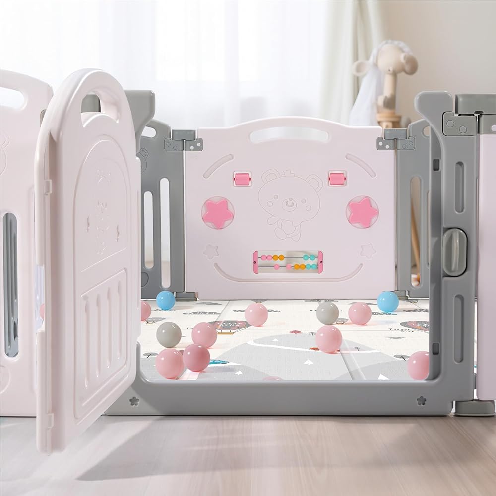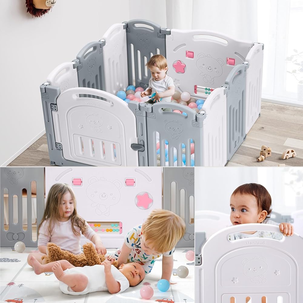 🎁الحل النهائي للأم: تتميز ساحة اللعب الآمنة هذه بقفل بوابة آمن، مما يسمح للأمهات بحضور المهام الأخرى دون قلق بينما يستمتع أطفالهن بمساحة آمنة.