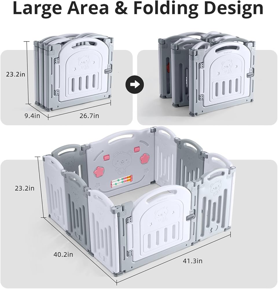 🎁حجم وشكل قابلان للتخصيص: مع تغطية تبلغ 22 قدمًا مربعًا وارتفاع 23.2 بوصة، يتكيف سياج الأطفال الخاص بنا بسهولة. قم بتغيير عدد اللوحات لإنشاء أشكال مخصصة، وتأمينها عن طريق قفل الموصلات.