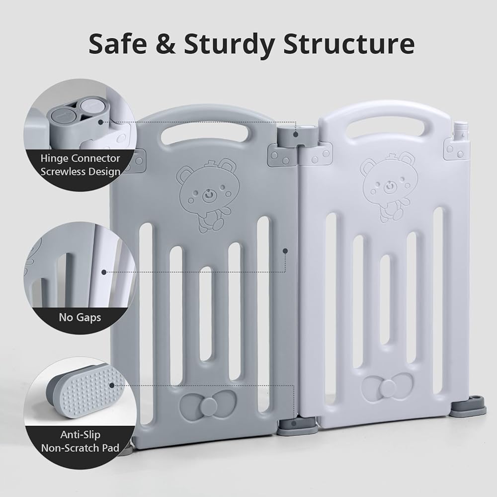 🎁قوي وآمن: مع الموصلات المطورة وقواعد السيليكون، يتم تثبيت قفص لعب الأطفال الخاص بنا بقوة على الأرض، مما يضمن الثبات. يمكن للأمهات أن يكون لديهن ثقة كاملة في سلامة أطفالهن أثناء اللعب بالداخل.