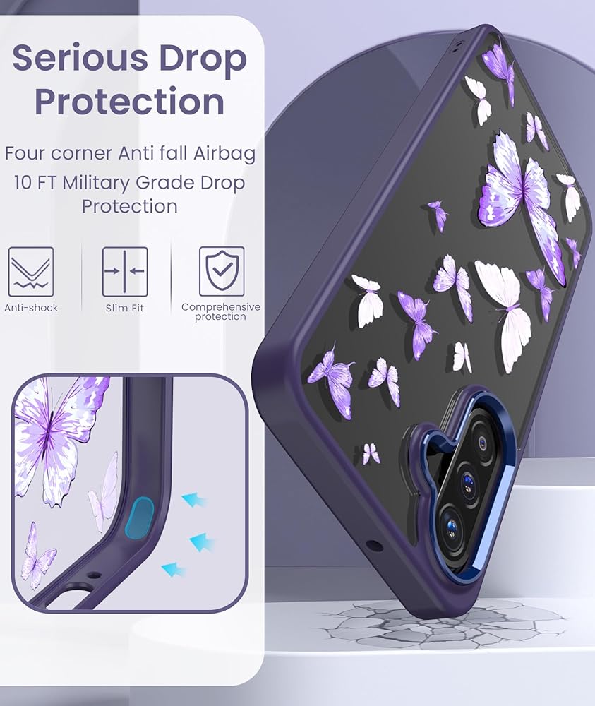 【حماية من الدرجة العسكرية】حواف مرتفعة لحماية الكاميرا والشاشة من الخدوش، 4 زوايا مضادة للتصادمات، تضمن حماية الجسم بالكامل، التصميم النحيف يجلب قبضة ممتازة دون إضافة حجم كبير.