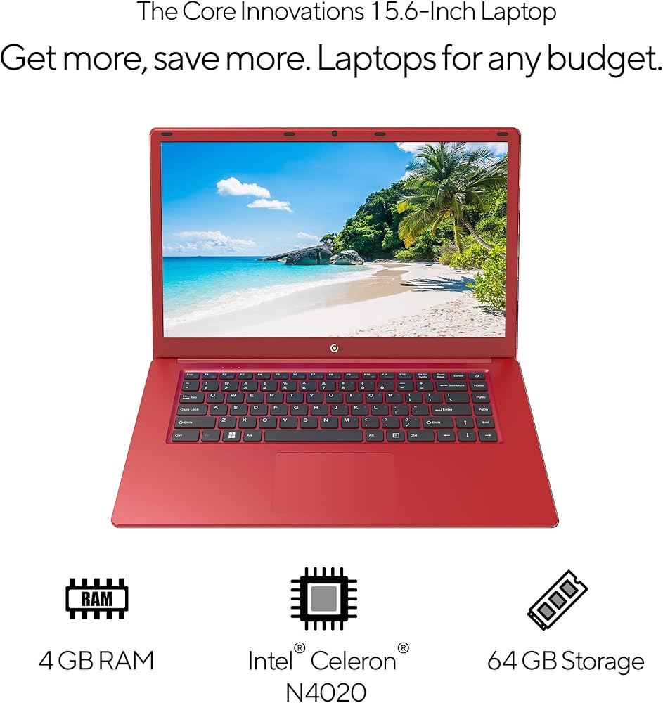 The Core Innovations 15.6-inch laptop (Blue) features a beautiful 1080p display that brings a crystal clear picture to all your tasks, games, movies and more. Windows 11 enhances security and performance while providing a familiar Windows experience. With an Intel® Celeron® processor N4020 4GB of RAM and 64GB of flash storage, the CLT2156BU lets you post, browse, work and play with ease. Connect your laptop to external devices via the mini HDMI output, and take advantage of the dual USB ports. And it all packs into a slim, lightweight frame, so you can bring your laptop along on all of life's adventures. Product contents contain a 15.6-inch laptop, Power Adapter, User Manual, and Warranty Card.