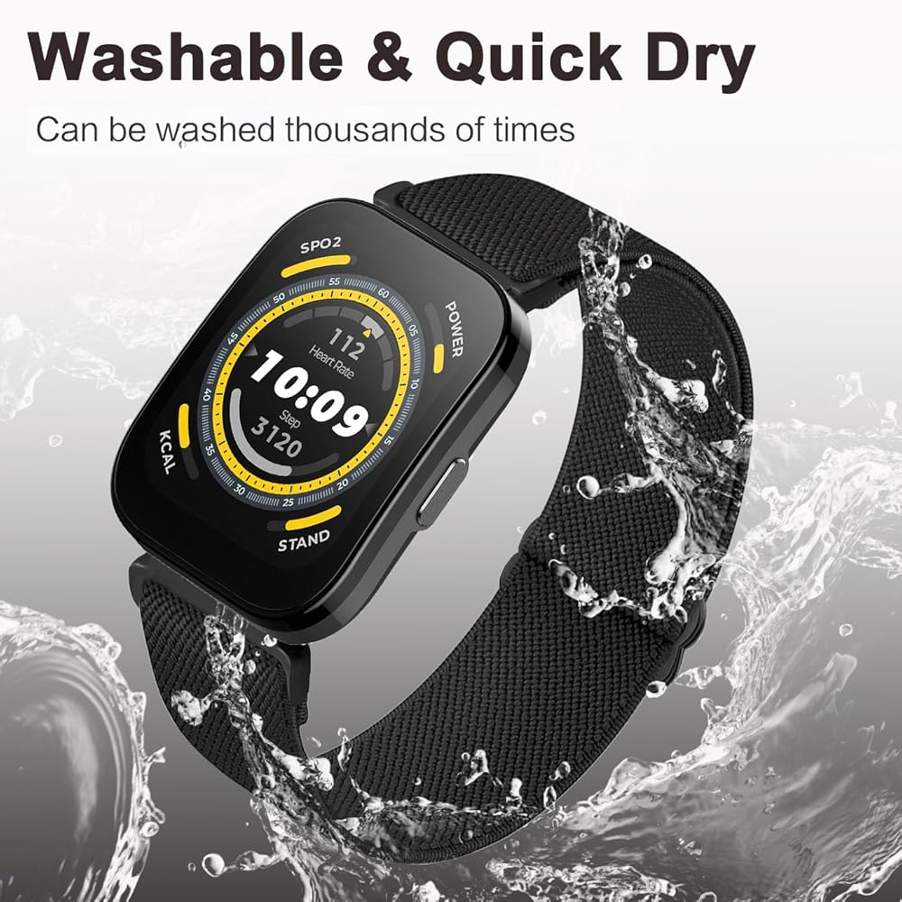 CUNUJIX 4 Pack Stretchy Watch Bands Compatible with 22mm Amazfit Bip 5 / GTR 4 / GTR 3 / GTR 3 Pro / GTR 2 / GTR 2e,Loop Nylon Elastic Fabric Strap for Amazfit Cheetah Pro / Balance