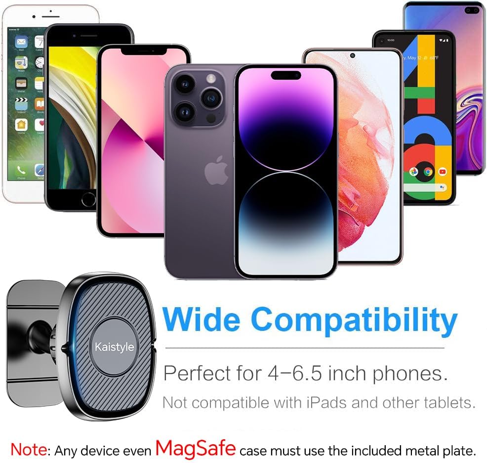 ✅【2-in-1 for Magnetic Car Mount】: Are you not sure which mounting method is better for your car? Don't worry! 2 base vent/adhesive base magnetic phone mount for flexible placement. Horizontal and vertical vents, dashboards ,Golf Cars,and tables, all places work perfectly. In addition, you have the option to avoid problems caused by environmental effects due to low winter temperatures and hot summers. Suitable for all cars, pickup trucks, SUVs, cabs, etc.