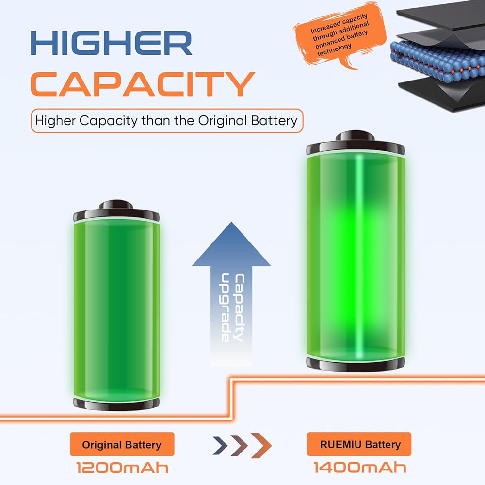 2024 New Upgraded Capacity: 1400mAh high capacity, more power than original standard battery, same size but more capacity and more power life. New 0 Cycle, up to 900 charging cycles. You will no longer have to worry about your Phone running out of battery quickly!