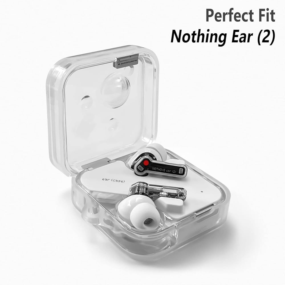 حافظة سيليكون من Geiomoo لسماعات Nothing Ear 2، غطاء حماية مزود بحلقة تسلق (شفاف)