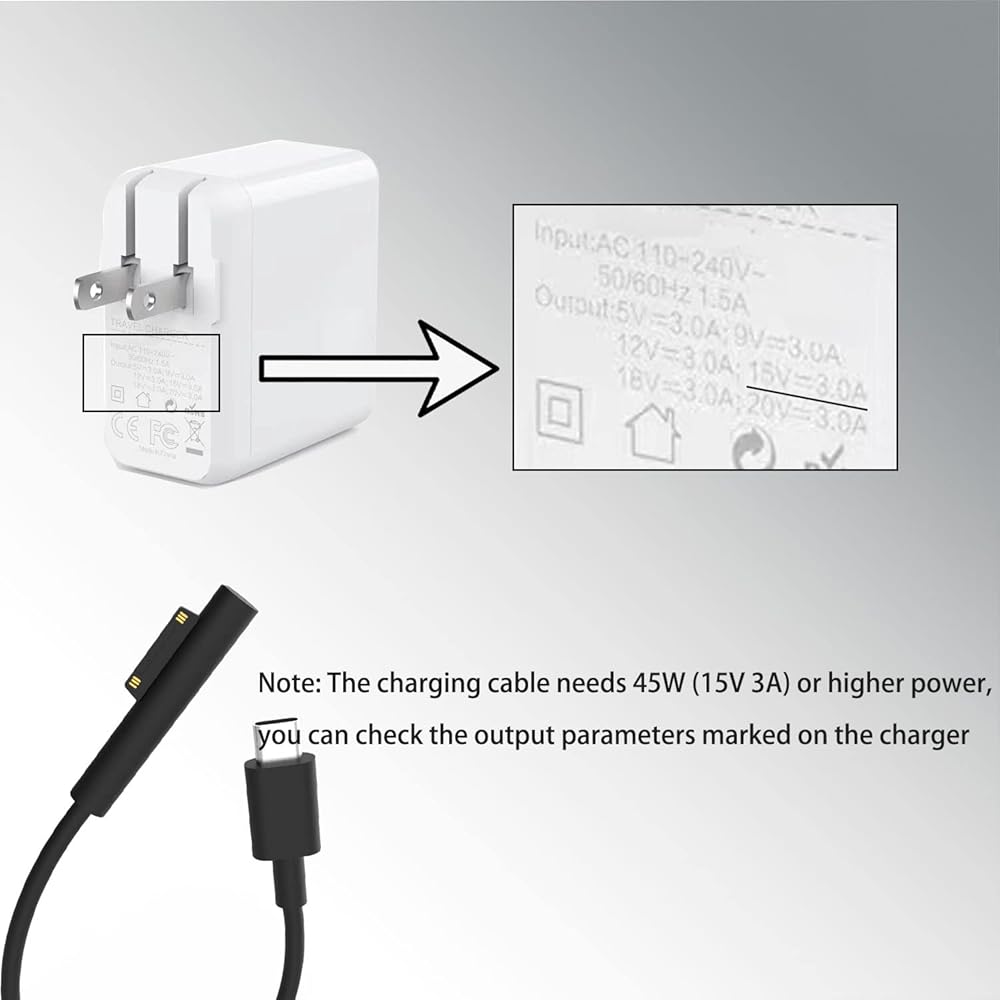 The charging cable is very suitable for people who need to travel frequently. You only need to carry a 15V 3A 45W parameter or higher power USB C wall charger and the charging cable to charge your surface, which is more portable