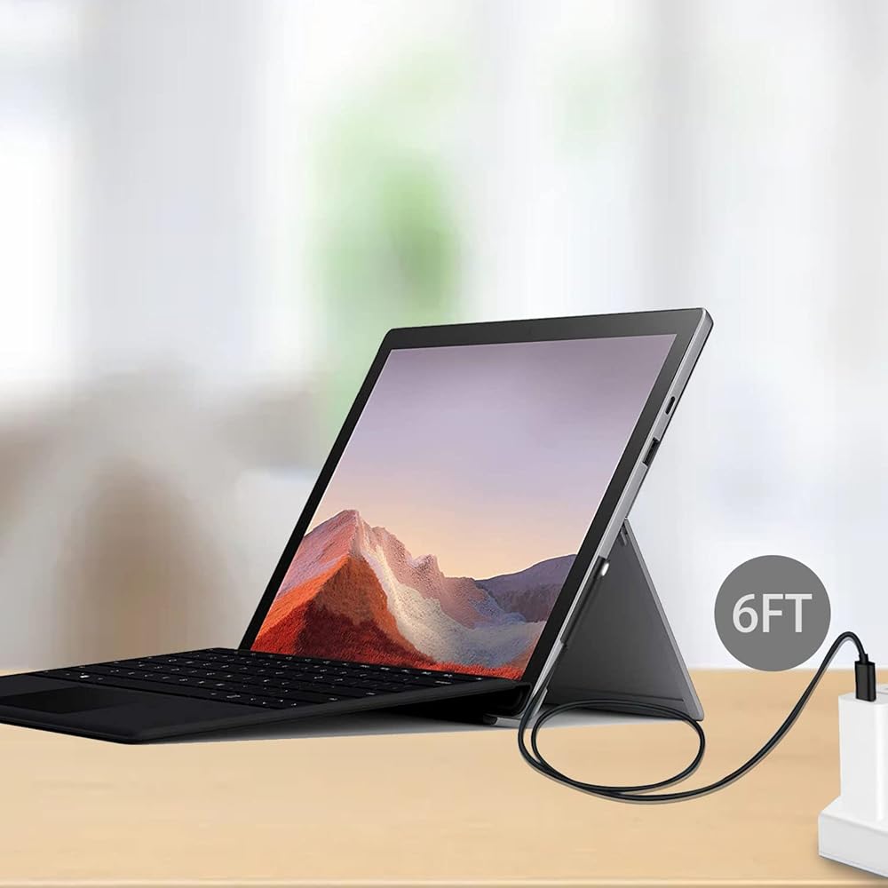 The charging cable is 6 feet long, which is long enough to charge more conveniently, but it needs to be connected to a 45W 15V3A USB-C (PD) wall charger or a higher wattage such as 65W to charge Surface devices