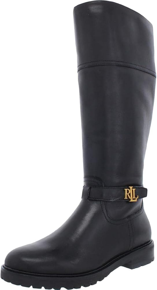 حذاء Lauren Ralph Lauren نسائي Everly مصنوع من الجلد لمنتصف الساق باللون الأسود 5 متوسط (B، M)