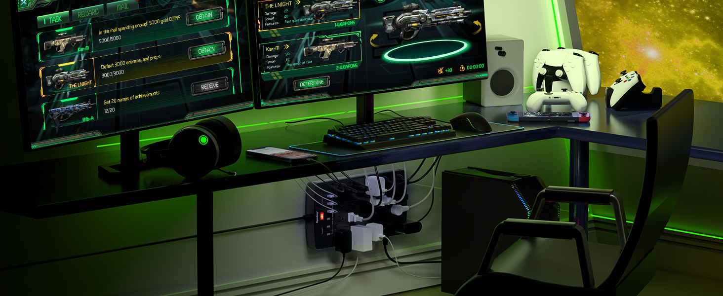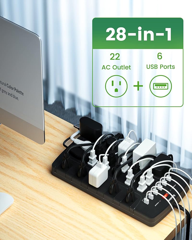 • شريط طاقة 28 في 1: 22 منفذًا مؤرضًا ثلاثي الشقوق و6 منافذ USB تعمل على تشغيل جميع الأجهزة في مكان واحد، رائعة لشحن أجهزة متعددة مثل أنظمة الألعاب والتليفزيون والأصوات المحيطية وجهاز التوجيه ومحطات الشحن لأجهزة التحكم والهواتف والأجهزة اللوحية وأجهزة الكمبيوتر المحمولة.