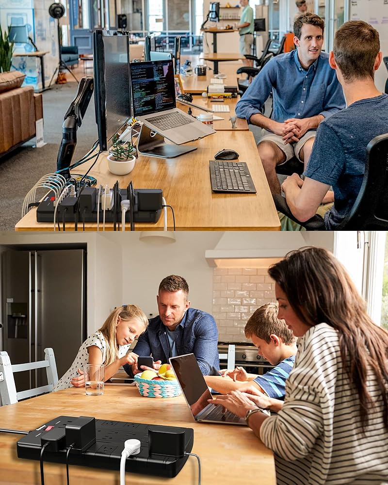 • 【قابس قابل للتركيب ومسطح】كبير جدًا ولكنه مسطح وقابل للتركيب، يمكنك بسهولة تركيب شريط الطاقة القابل للتركيب في أي مكان. يحتوي سلك التمديد بطول 6.5 قدم على قابس مسطح بزاوية 45 درجة، ويتناسب تمامًا خلف الأثاث ولا يغطي الوعاء السفلي لمنفذ مزدوج.