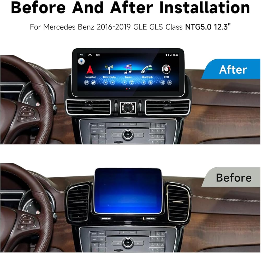 شاشة عرض Android 13 12.3 بوصة عالية الدقة تعمل باللمس زرقاء مضادة للوهج، ذاكرة وصول عشوائي 4 جيجابايت + ذاكرة وصول عشوائي 64 جيجابايت، تدعم Carplay، Android Auto، Mirror Link، لشاشة راديو السيارة Mercedes Benz 2016-2019 GLE GLS Class NTG5.0