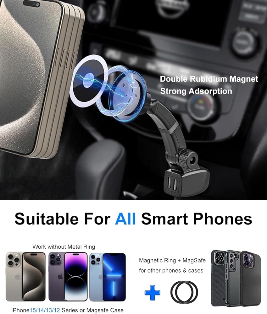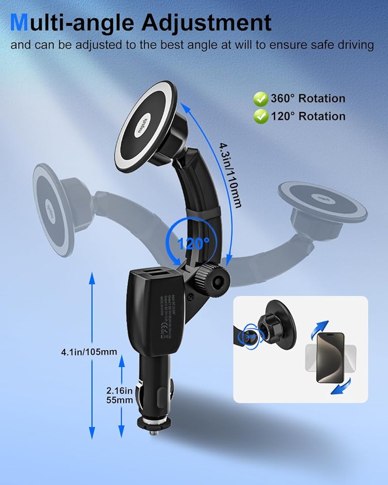 ✔️[آمن ومستقر] حامل الهاتف المغناطيسي لولاعات السجائر أسرع من حامل الشاحن اللاسلكي القياسي، شريحة ذكية مدمجة، تتعرف بذكاء على أجهزة الشحن السريعة، ويمكن أن تمنع ارتفاع درجة الحرارة، والجهد الزائد، والتيار الزائد، والدائرة القصيرة، وضمان سلامة سلامة المركبات والمعدات.