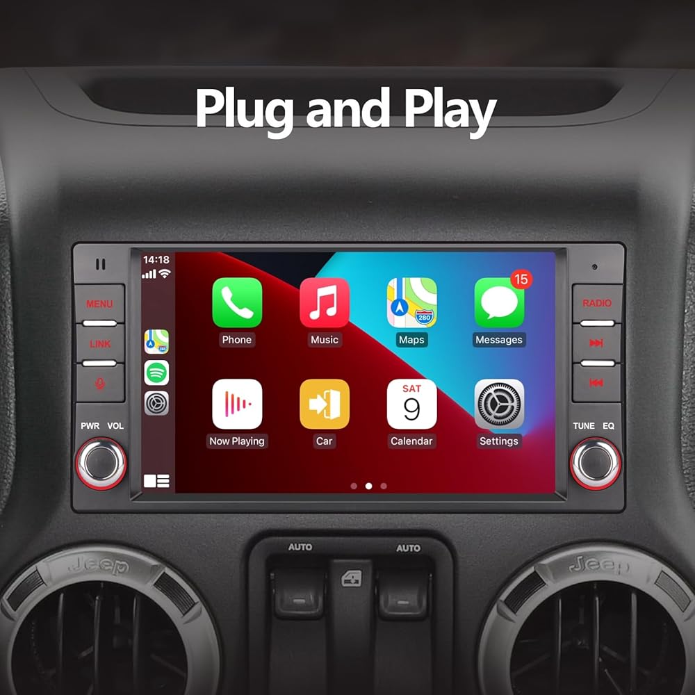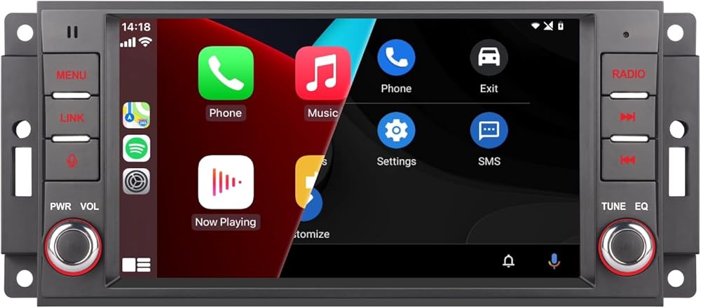 ستيريو سيارة LXKLSZ متوافق مع Carplay اللاسلكي/Android Auto لسيارة جيب رانجلر كوماندر دودج كرايسلر مع شاشة لمس IPS/بلوتوث/وصلة مرآة/FM/AM/USB
