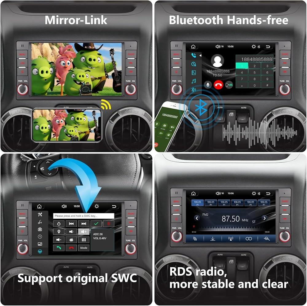 • 【راديو بلوتوث وFM/AM】يدعم نظام البلوتوث المدمج الذي تمت ترقيته حديثًا الاتصال بدون استخدام اليدين ومزامنة الاتصال وتشغيل الموسيقى والوظائف الأخرى. تم تضمين ميكروفون خارجي، مما يوفر لك تجربة اتصال واضحة وسلسة وتحسين سلامة القيادة. وهي مجهزة براديو FM / AM عالي الجودة. يمكنك ضبط المحطات مسبقًا والاستماع إلى معلومات حركة المرور ونشرات الأخبار والتنبؤات الجوية وما إلى ذلك في أي وقت وفي أي مكان.