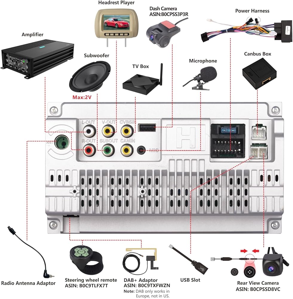 • 【دعم كاميرا داش 】يدعم هذا الراديو كاميرا داش. يمكنه تسجيل الفيديو الأمامي أثناء القيادة. إنه سهل التثبيت، ولا يتطلب سوى خطوتين للتوصيل. تُباع كاميرا لوحة القيادة بشكل منفصل. إذا كنت في حاجة إليها، يرجى زيارة الرقم التعريفي القياسي ASIN: B0CPSS3P3R