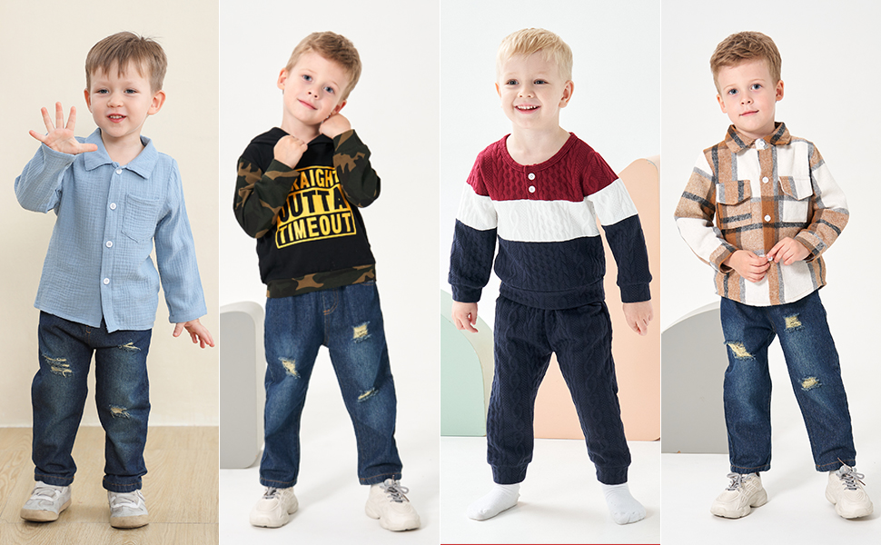 • خامة عالية الجودة---ملابس أطفال قطنية للأولاد مع نسيج ناعم ومريح، ملابس شتوية رائعة للأولاد للعب، كما أنها هدية جيدة كزي للأطفال الرضع