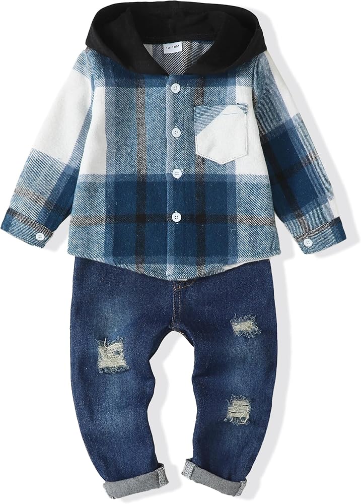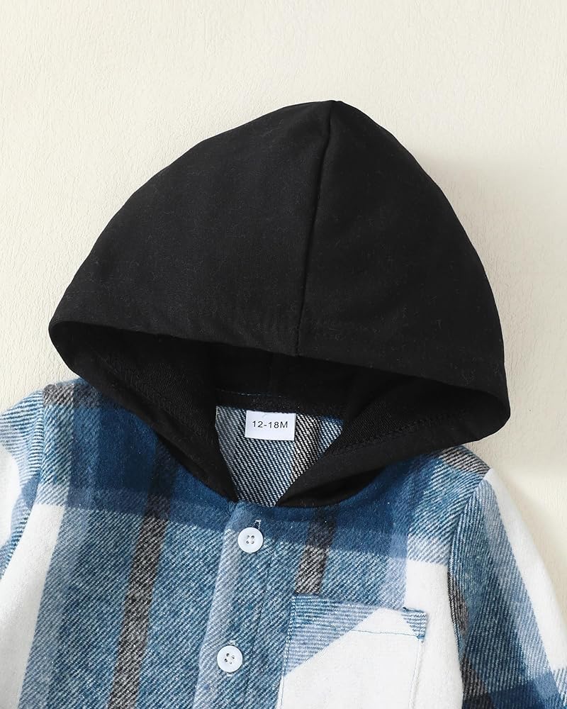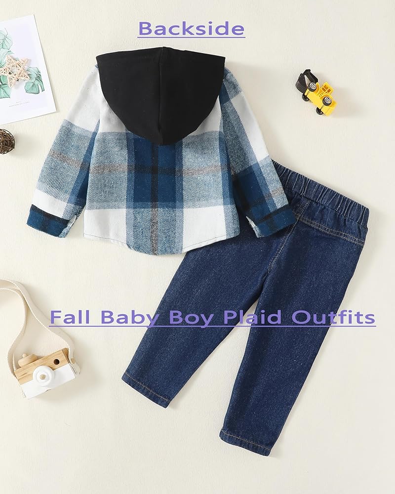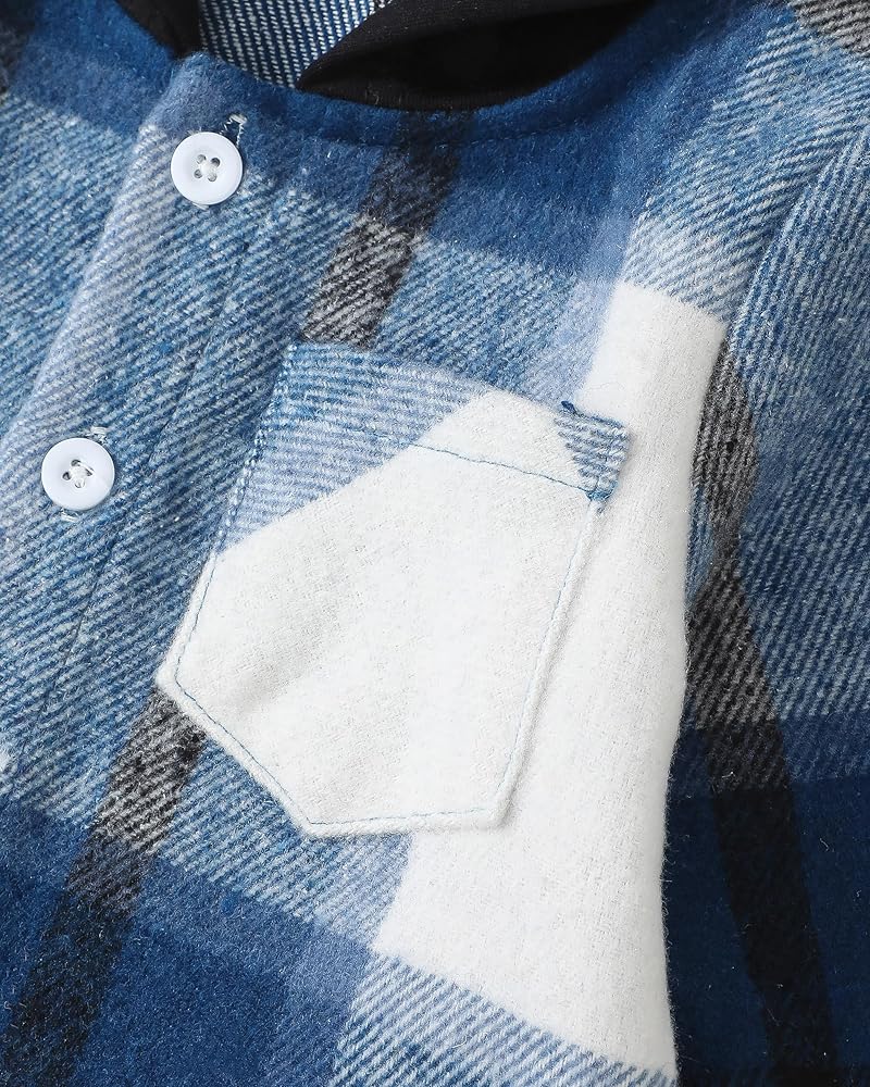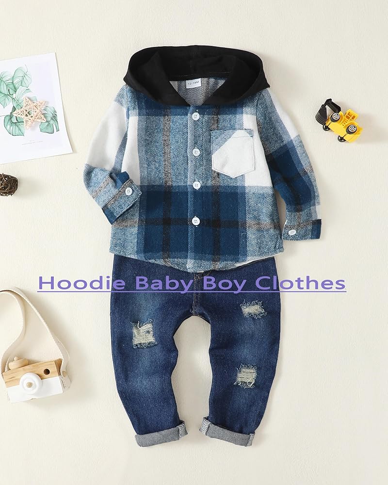 ملابس للأولاد من عمر 18 إلى 24 شهرًا ملابس شتوية بقلنسوة للأطفال من قماش الدنيم ملابس أطفال للأولاد من عمر 18 إلى 24 شهرًا باللون الأزرق منقوشة للشتاء