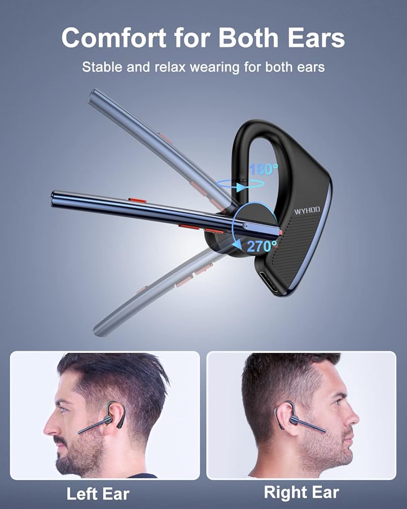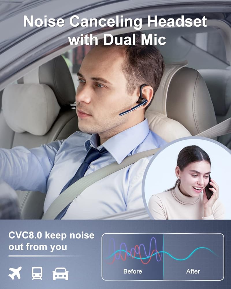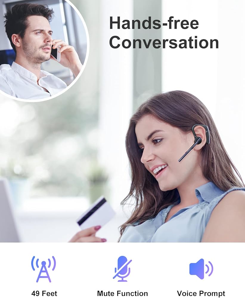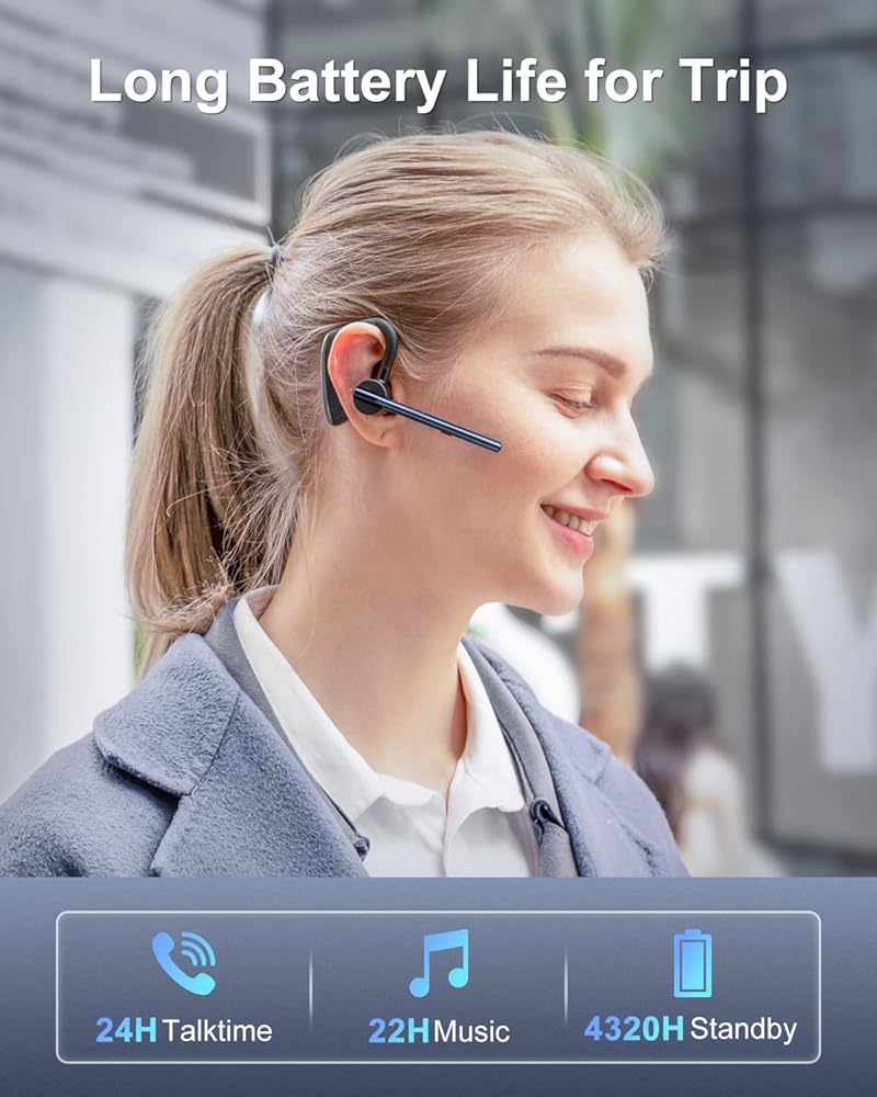 🎧 وقت التحدث 24 ساعة و180 يومًا في وضع الاستعداد: سماعة أذن بلوتوث مع ميكروفون لديها وقت تحدث 24 ساعة، تشغيل الموسيقى 20 ساعة، وضع الاستعداد 180 يومًا مع وقت شحن 2-3 ساعات فقط. يوفر عمر البطارية القوي عناء الشحن المتكرر وهو الخيار الأفضل للمحترفين المتنقلين الذين يعتمدون على الهاتف المحمول أثناء التنقل.