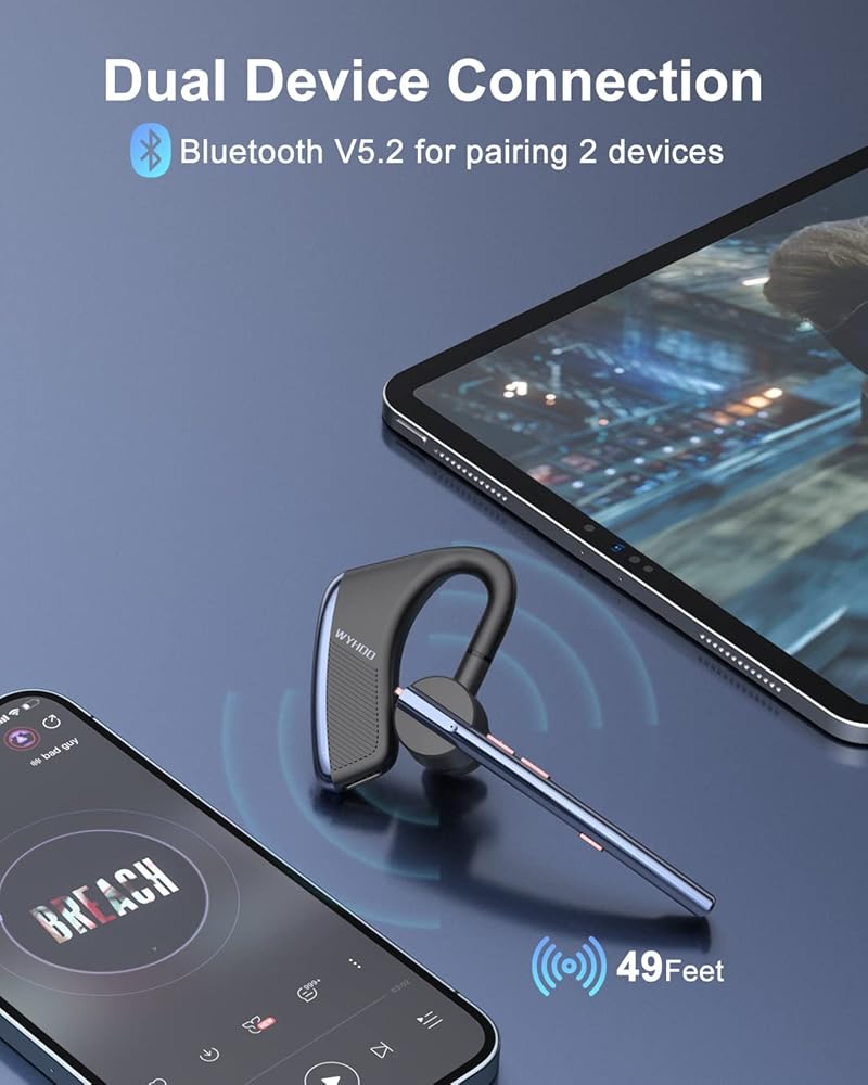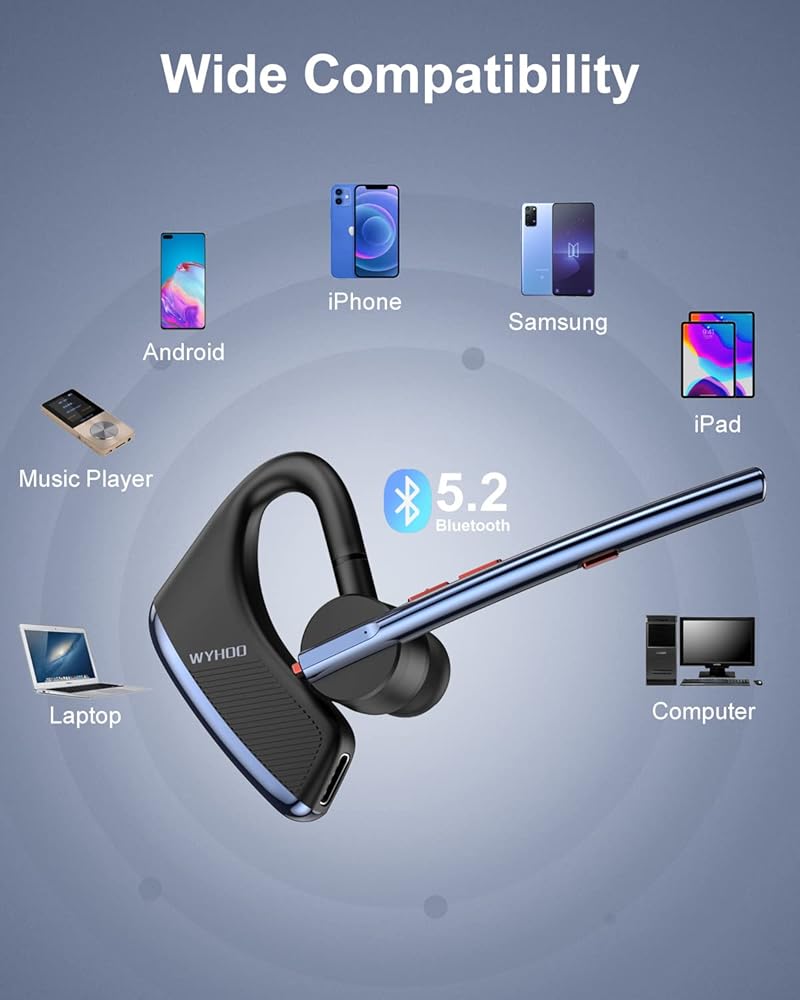 🎧 اتصال بلوتوث 5.2 مزدوج: توفر سماعة الرأس غير اليدوية اتصالاً سريعًا ومستقرًا لإجراء مكالمات وموسيقى واضحة مع أحدث تقنيات بلوتوث 5.2. يمكنك إقران أي هاتفين بسهولة وسرعة والرد على المكالمات من أي منهما. سماعة الأذن اللاسلكية متوافقة مع جميع الهواتف الذكية التي تعمل بنظام iOS وAndroid.
