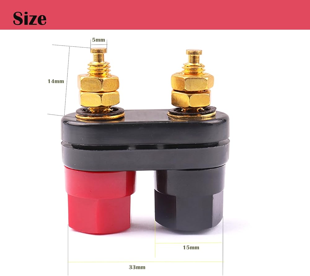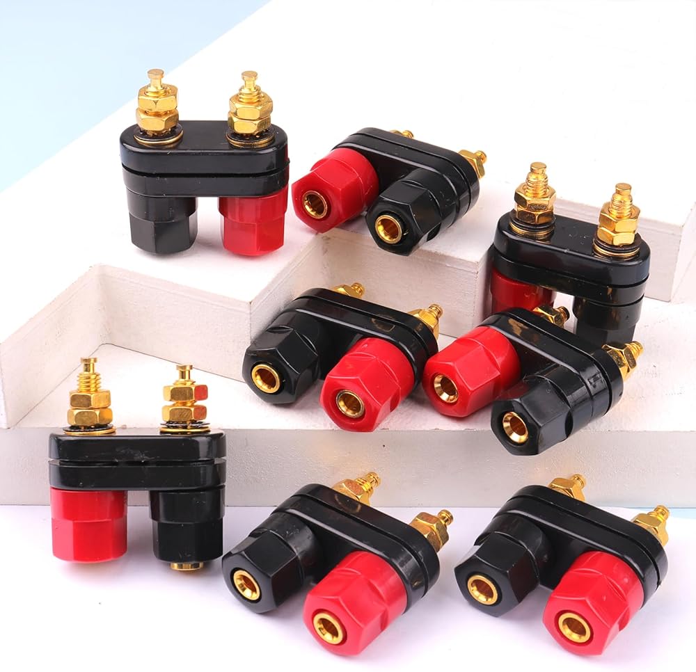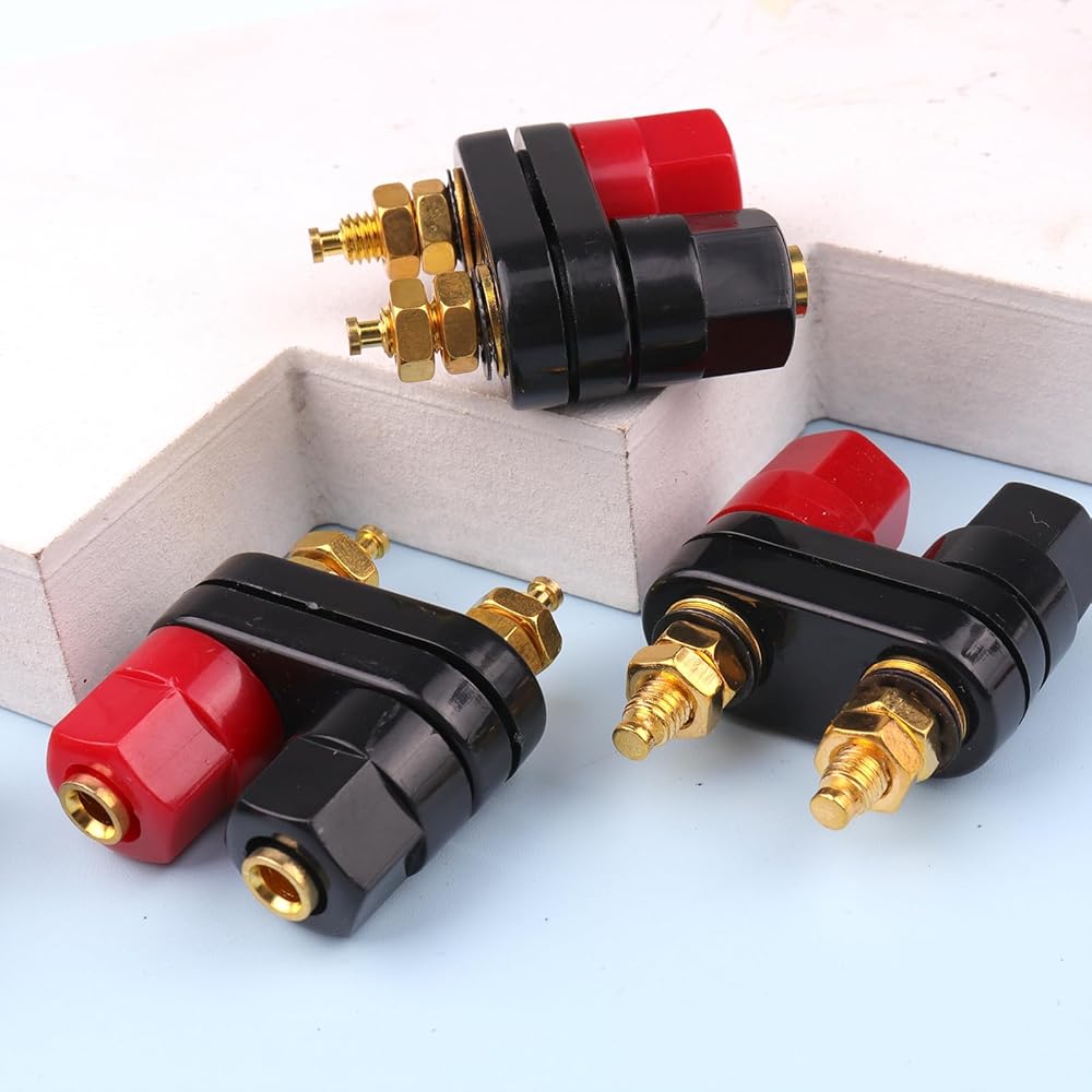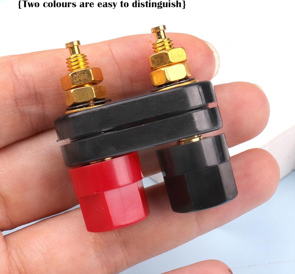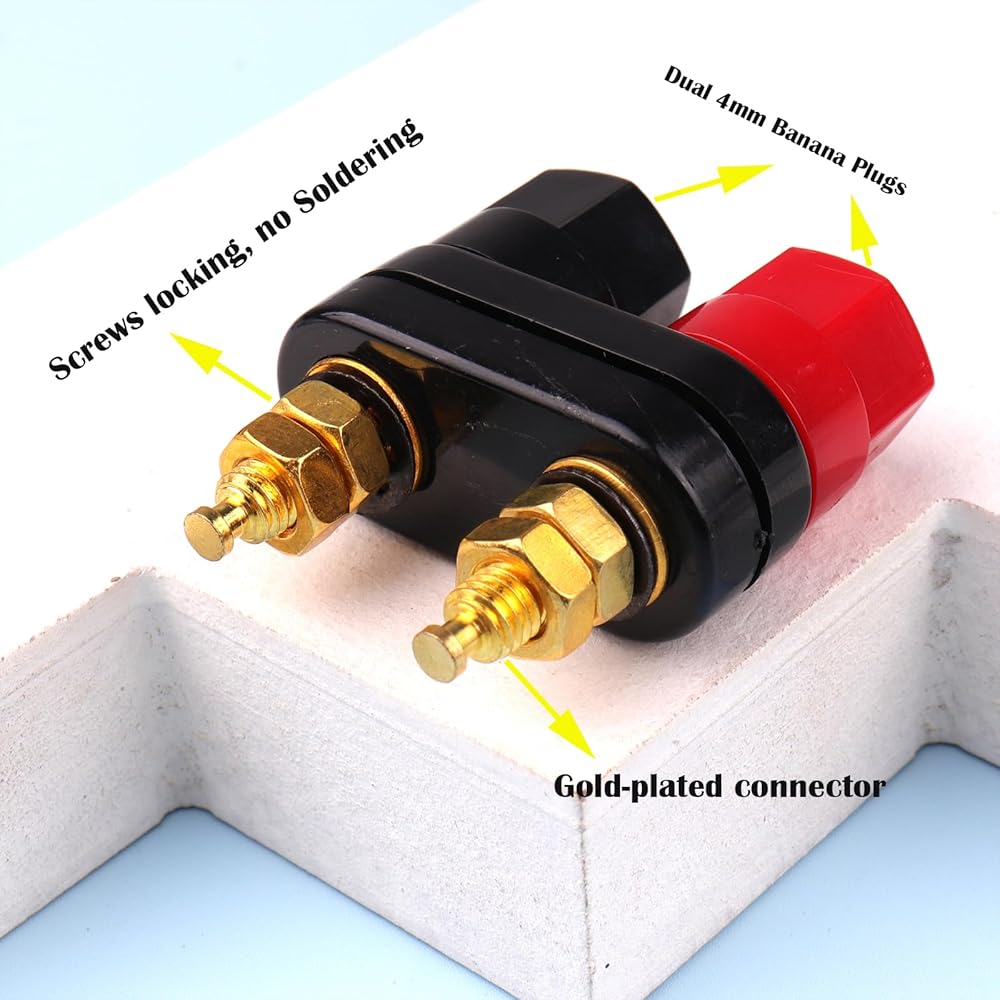 من السهل التمييز بين لونين عند التثبيت. تأتي مع 3 غسالات مطلية بالذهب، 2 غسالات قفل، 2 صواميل لكل عمود ويمكن تفكيكها بالكامل مما يجعل الاتصال سهل وقوي. بلاستيك ABS صديق للعزل لتسهيل التعرف على أسلاك السماعات.