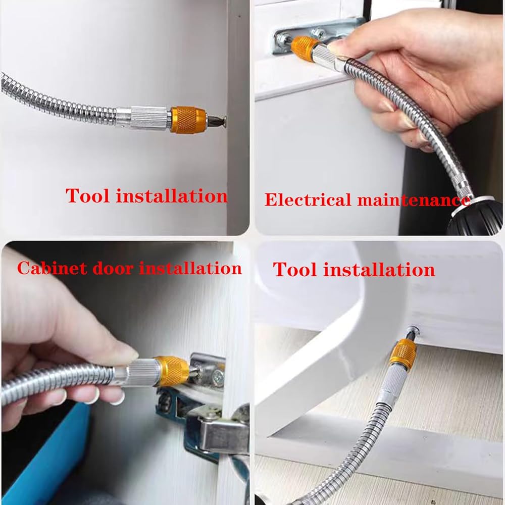 Product Function:The metal hose can be bent up to 300 degrees and rotated flexibly, easily controlling various angles and directions. When working in tight spaces, our flexible drill extensions can easily solve this problem, it can bend, twist and rotate at various angles, making your work more convenient.