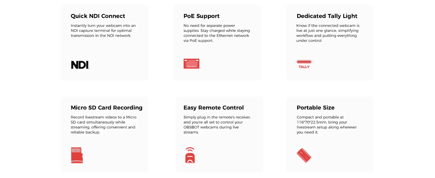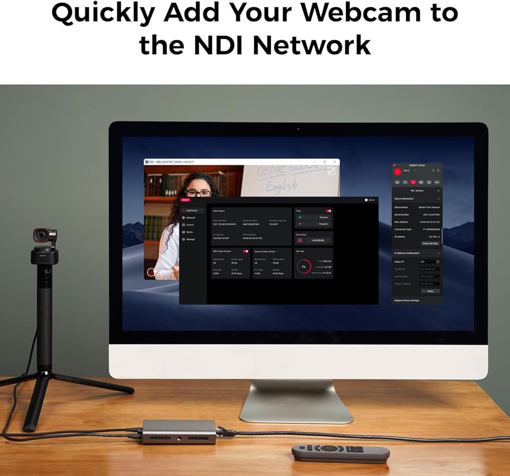 محول OBSBOT UVC إلى NDI لكاميرات الويب Tiny 2/Tiny 4K/Tiny Meet/Meet 4K وUVC، ودعم PoE وإضاءة تالي، وتحويل إشارات UVC على الفور إلى ND، وتسجيل بطاقة Micro SD المتزامنة