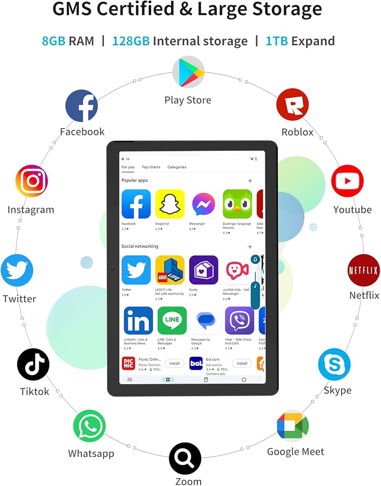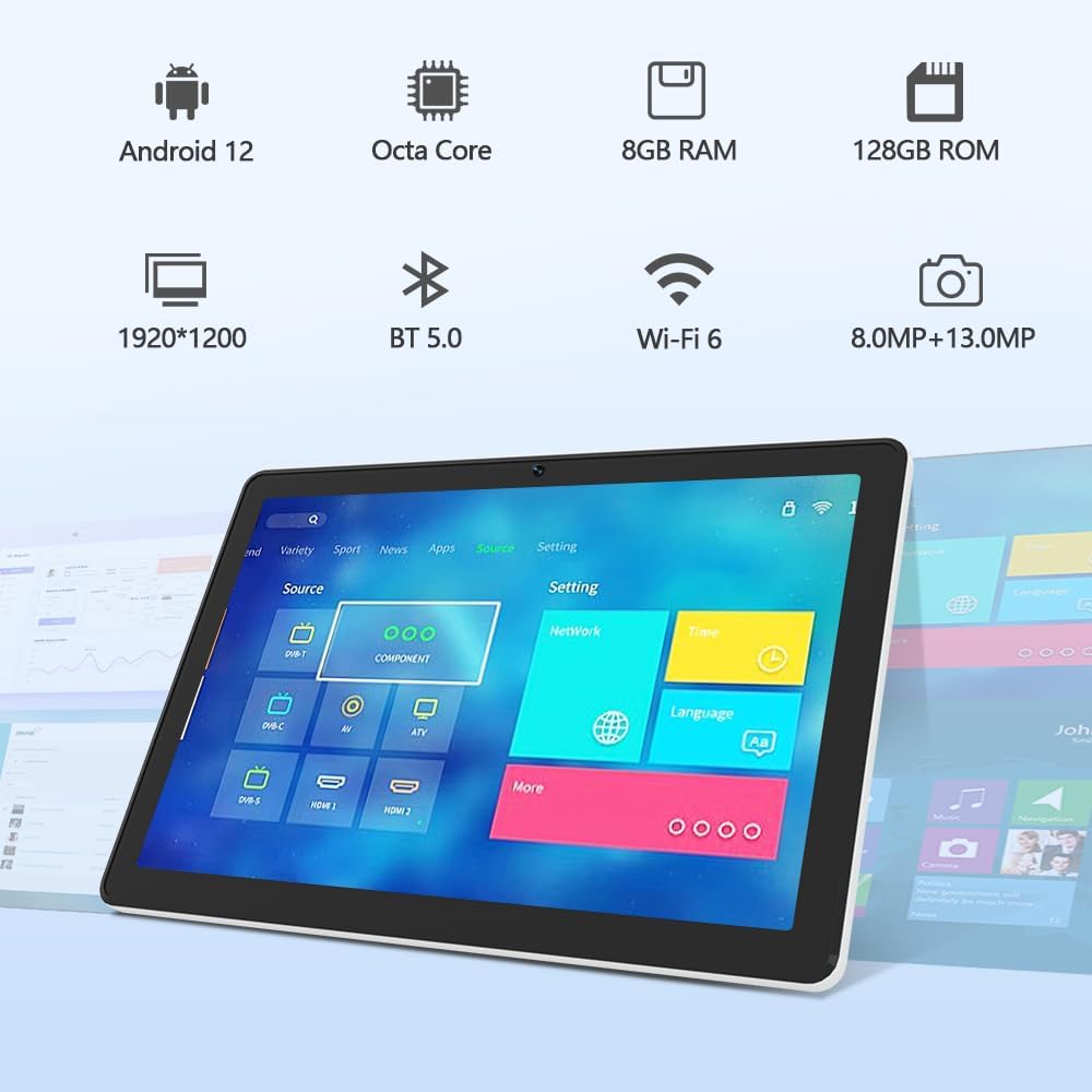 1920 x 1200 Full HD Screen / Android Tablet with GMS Certification: The Android 12 operating system ensures a smooth and user-friendly experience with access to the Google Mobile Services (GMS), offering seamless integration with popular apps like Google Maps, Gmail, and Google Drive.