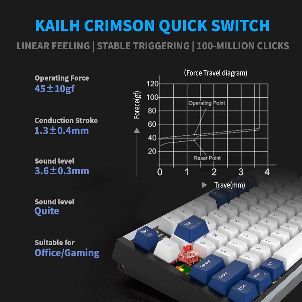 【هيكل مفتاح كامل الحجم قابل للتبديل السريع】تعتمد لوحة المفاتيح الميكانيكية Hexgears I3 على مفاتيح كاملة الحجم قابلة للتبديل السريع، ومفتاح كامل قابل للتوصيل بلوحة المفاتيح، والتوصيل والتشغيل. يمكنك تغيير المفاتيح الميكانيكية المختلفة وفقًا لتفضيلاتك الخاصة. لذلك فهو مصمم خصيصًا لك الذين يسعون إلى التفرد والتميز.