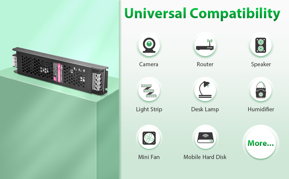 يعد مصدر الطاقة هذا خيارك الأفضل عند توصيل شرائط الإضاءة بشكل متوازٍ أو عند الحاجة إلى تشغيل معدات مختلفة. مجموعتان من قنوات الإخراج أكثر ملاءمة لاستخدامك.