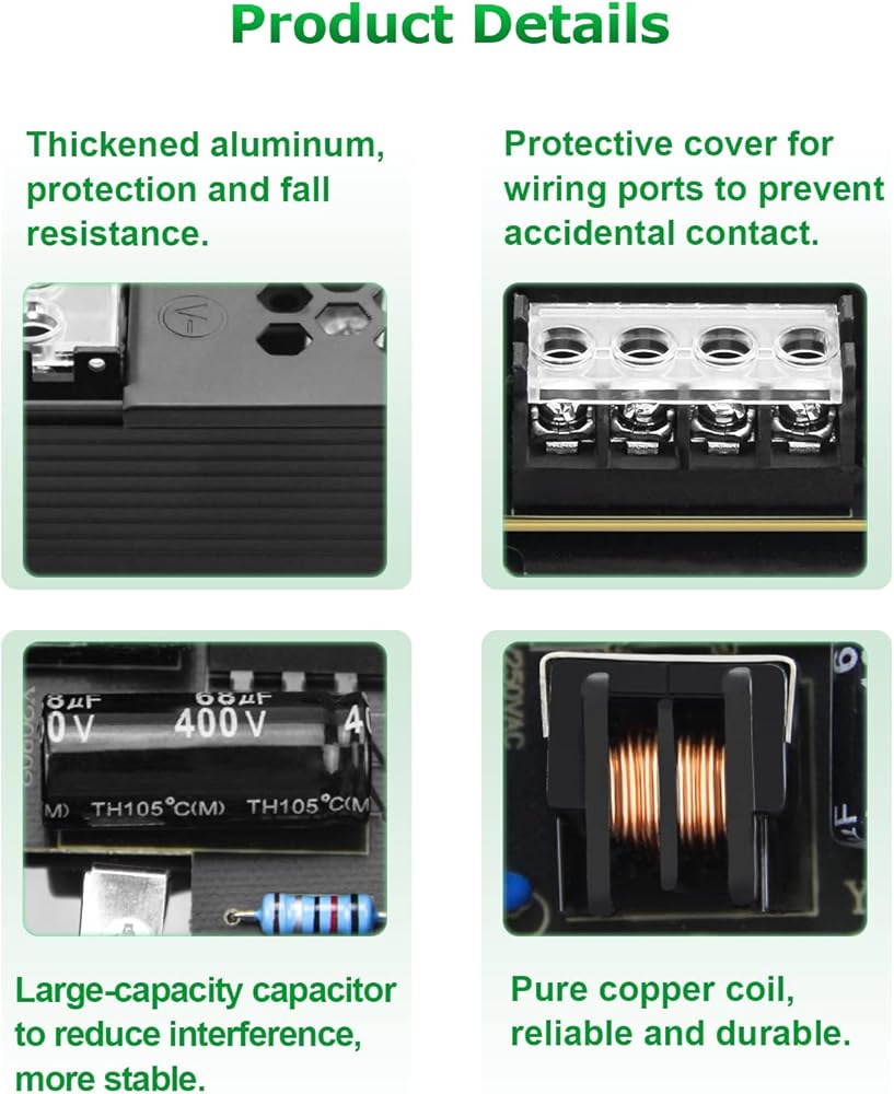 مصدر الطاقة 24 فولت 8 أمبير: الإدخال: تيار متردد 100 فولت ~ 240 فولت، 50/60 هرتز؛ الإخراج: تيار مستمر 24 فولت 8 أمبير 144 واط (كحد أقصى). تيار الإخراج هو 8A كحد أقصى، مما يعني أنه يمكن إمداده بجميع التيارات التي تقل عن 8A، مثل 24V 8A 7A 6A 5A 4A 3A 2A 1A إلخ.